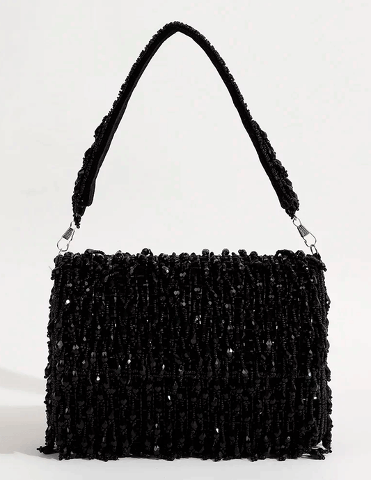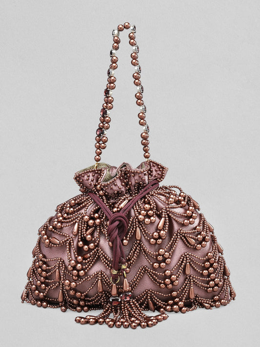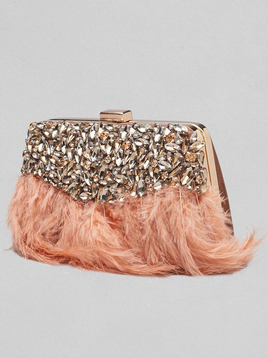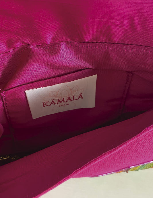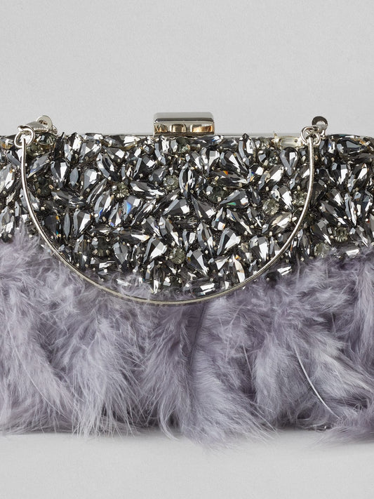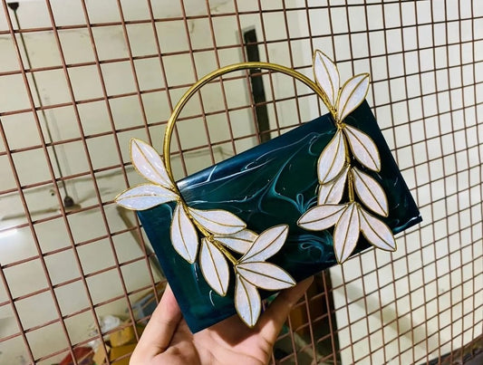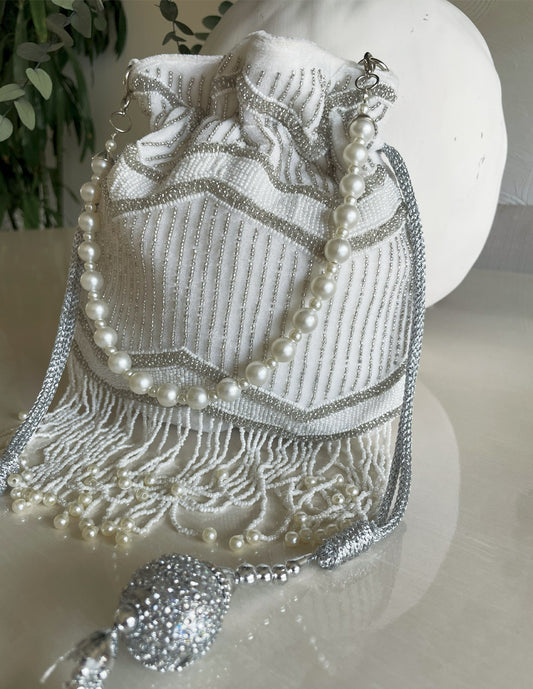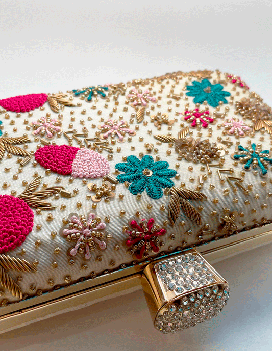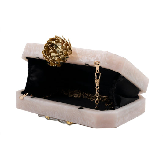 Clutch nacarado blanco con cristal y cierre flor de loto