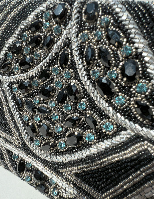 Bombonera blanca de terciopelo bordada a mano con cierre cristales