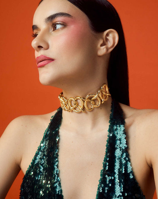 Choker dorado con pedrería granate