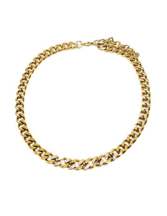 Cadena de eslabones dorados en acero con strass