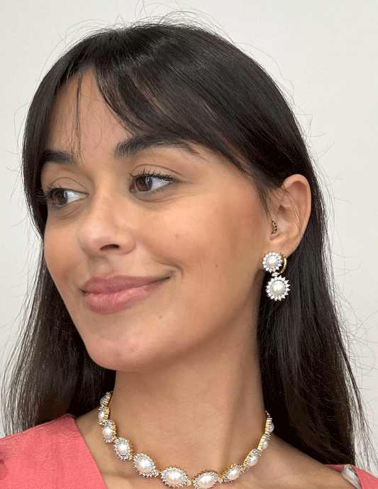 choker de pedrería blanco con detalle central gota