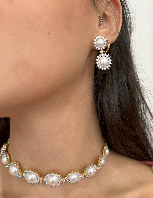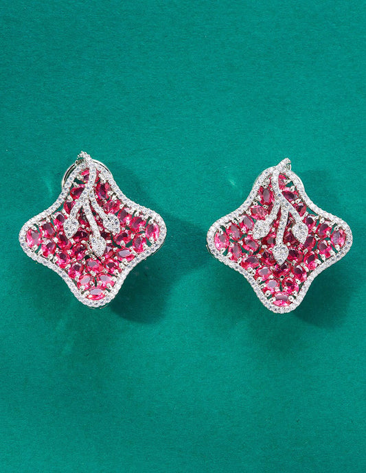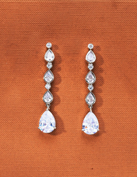 Pendientes largos rodiados con cristales y piedras semi-preciosas