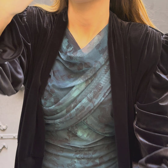 Nos encanta en todas sus versiones, más formales e informales. Este kimono de terciopelo es simplemente ideal.